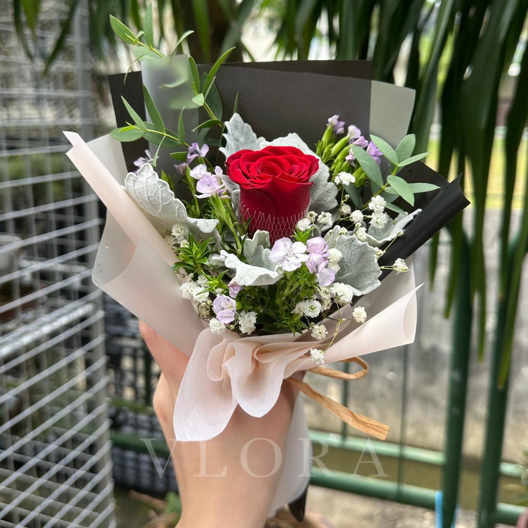 A perfect balance of romance and sophistication, this fresh flower bouquet highlights the classic beauty of a single Red Rose.