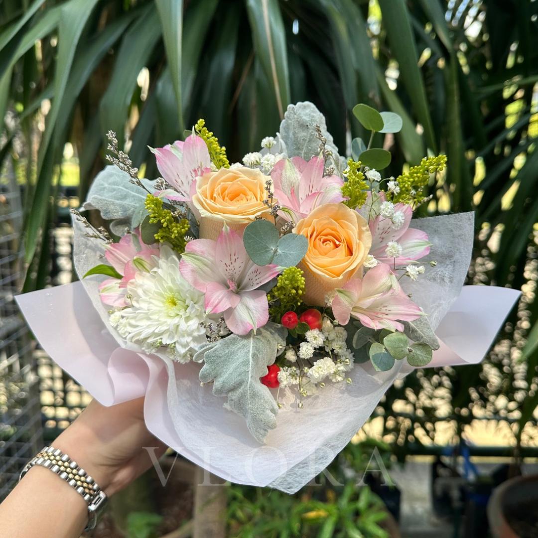 Flower availability varies with the seasons. If a specific flower isn’t available, we’ll replace it with a similar or higher-value option without prior notice. (Wrapping styles may also vary slightly, but the overall design will remain consistent.)